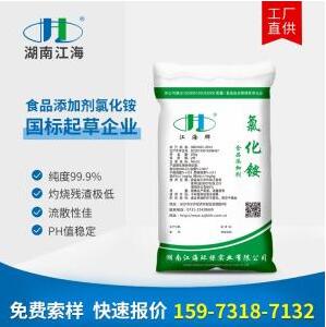 食品級氯化銨是江海公司潛心研究,在多年提純精制的經(jīng)驗基礎上,通過特殊的結晶工藝精制而成,具有純度高、晶形規(guī)整、重金屬離子極低的特點,被廣泛的應用在酵母養(yǎng)料、面團改性、醬油催化、皮蛋上色、咸甘草糖制作等領域。同時近期發(fā)現(xiàn)在高品質(zhì)獸藥中食品級氯化銨同樣能起到很好的作用。 產(chǎn)品包裝 內(nèi)塑外編或按客戶要求 產(chǎn)品規(guī)格 25或50kg/袋 ...