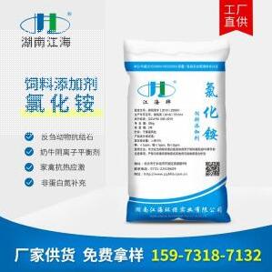 湖南江海環(huán)保實業(yè)公司生產(chǎn)的飼料級氯化銨是以農(nóng)用或工業(yè)氯化銨為原料經(jīng)過去雜、提純等工藝精制而成。產(chǎn)品純度高,重金屬離子含量低等特點。能作為非蛋白劑補充反芻動物蛋白質(zhì)營養(yǎng),也被廣泛作為反芻動物抗結石劑,奶牛產(chǎn)前的陰離子平衡劑,家禽抗熱應激藥物,應用前景十分廣泛。 產(chǎn)品包裝 內(nèi)塑外編或按客戶要求 批準文號 湘飼添字(2019)230001 執(zhí)行標準 Q...